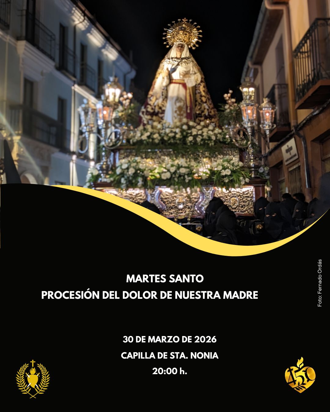 PROCESIÓN DOLOR DE NUESTRA MADRE: martes 31/03/2026 20:00