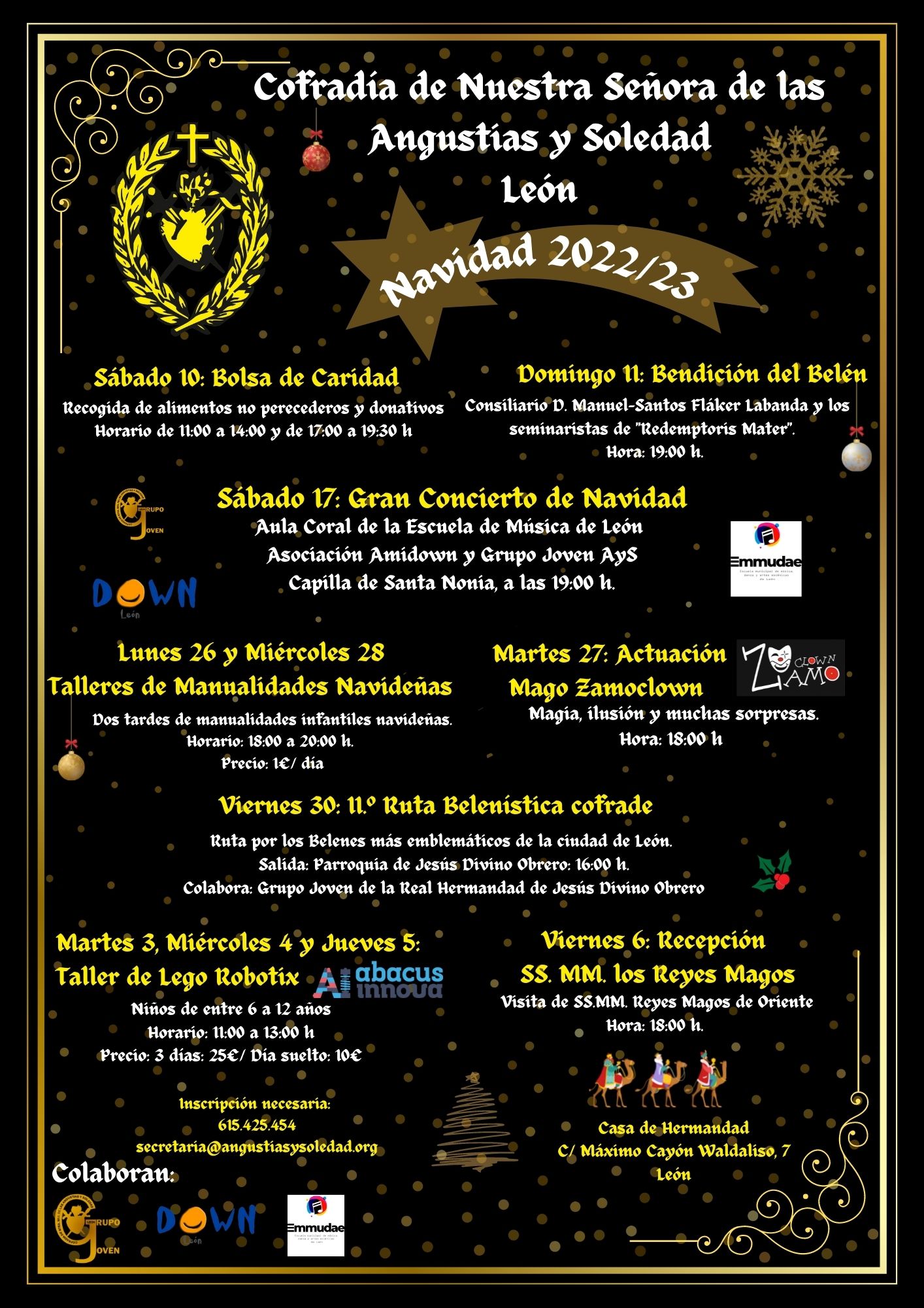 Compartimos la programación de las actividades culturales y solidarias, que nuestra Cofradía organizará de cara a esta Navidad.