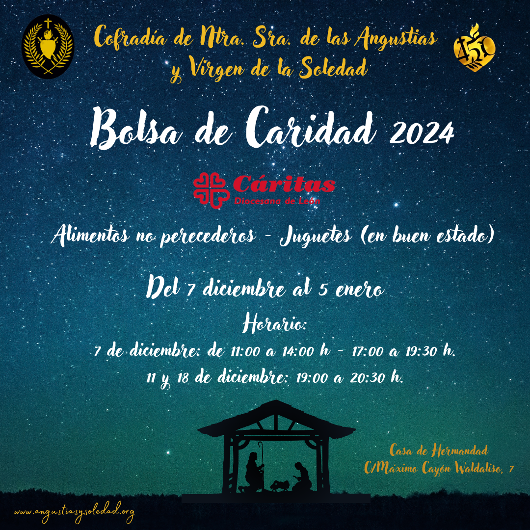 Un año más, la Cofradía invita a todos los hermanos y leoneses a participar en la Bolsa de Caridad, que comenzará el próximo día 7 de diciembre.