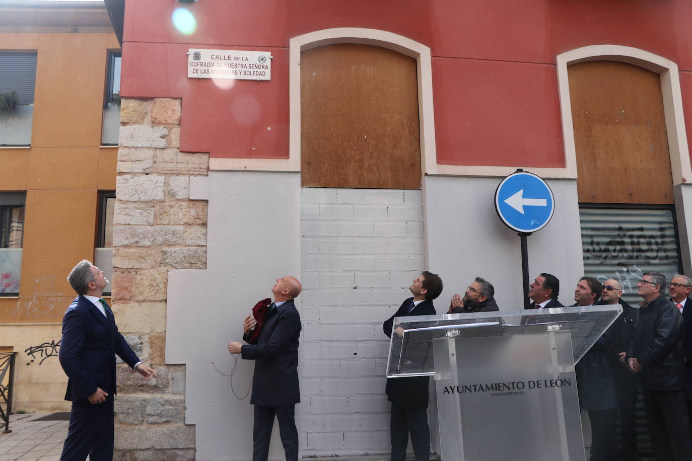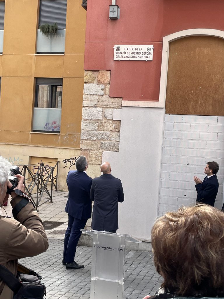 Durante la mañana de hoy, 18 de marzo, a las 12:00 h., se procedió al descubrimiento de la placa que acredita la concesión de la Calle de la Cofradía de Ntra. Sra. de las Angustias y Soledad en la ciudad de León, de manos del Sr. Alcalde, Don José Antonio Díez Díaz y acompañado por nuestro Abad, el hermano Hugo Medina Melcón y la Junta de Seises en su totalidad.
