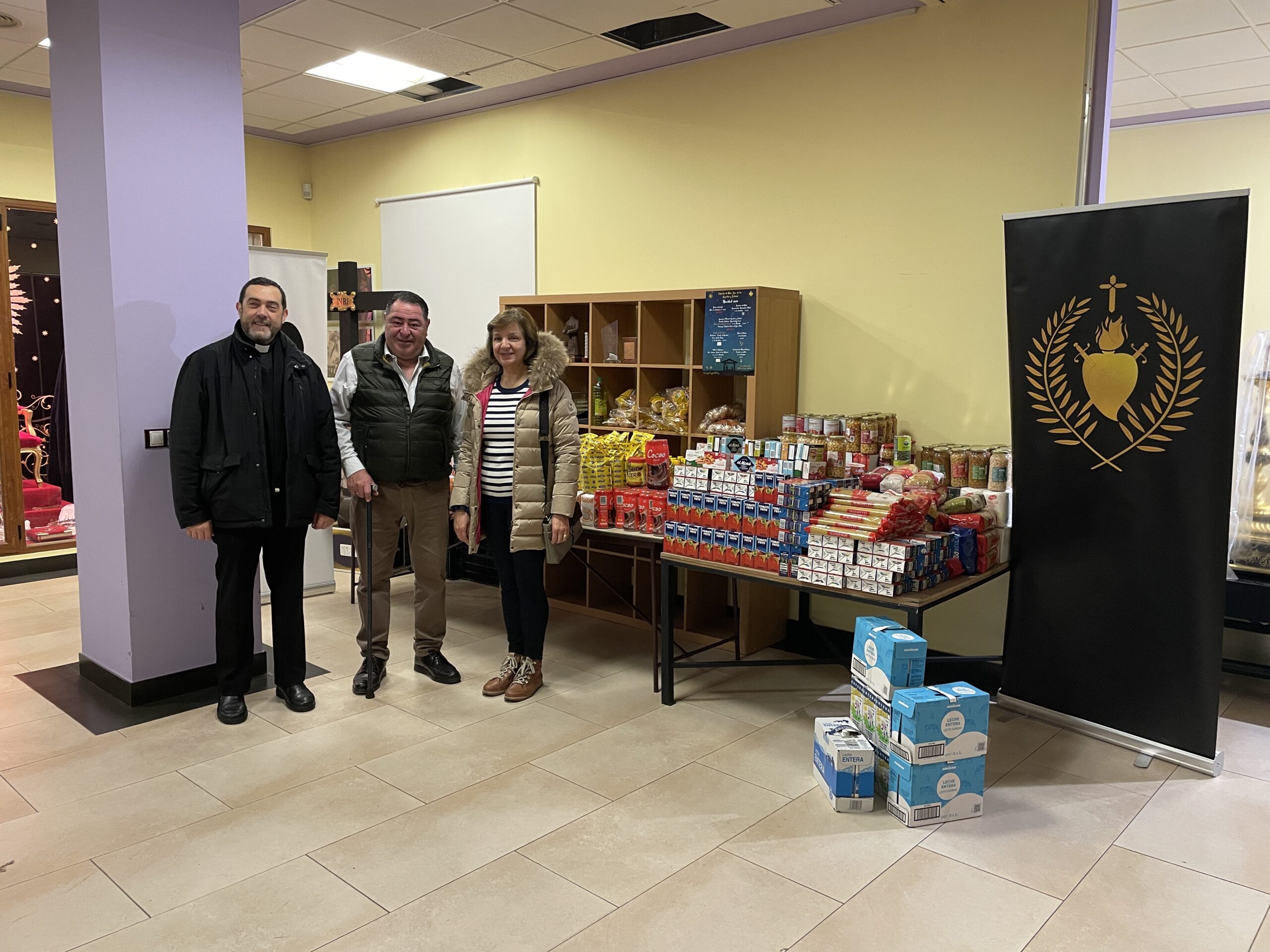 En el acto de entrega, nuestro Abad estuvo acompañado por el Consiliario, D. Manuel Fláker Labanda, junto con la responsable de Cáritas Parroquial, Adela Cortés.