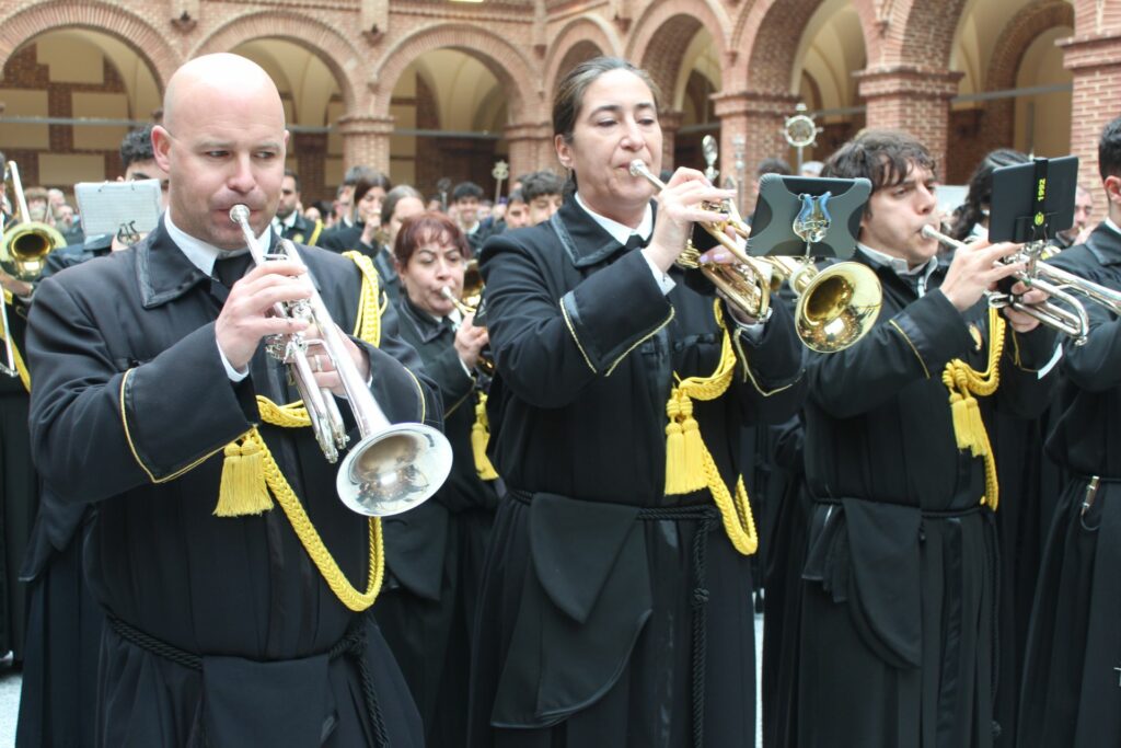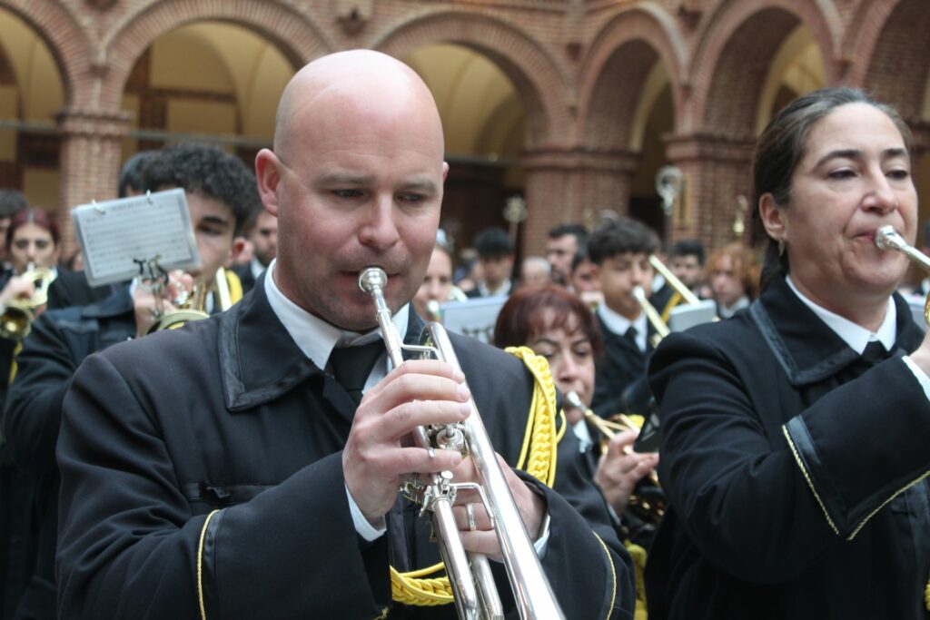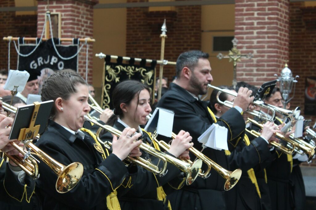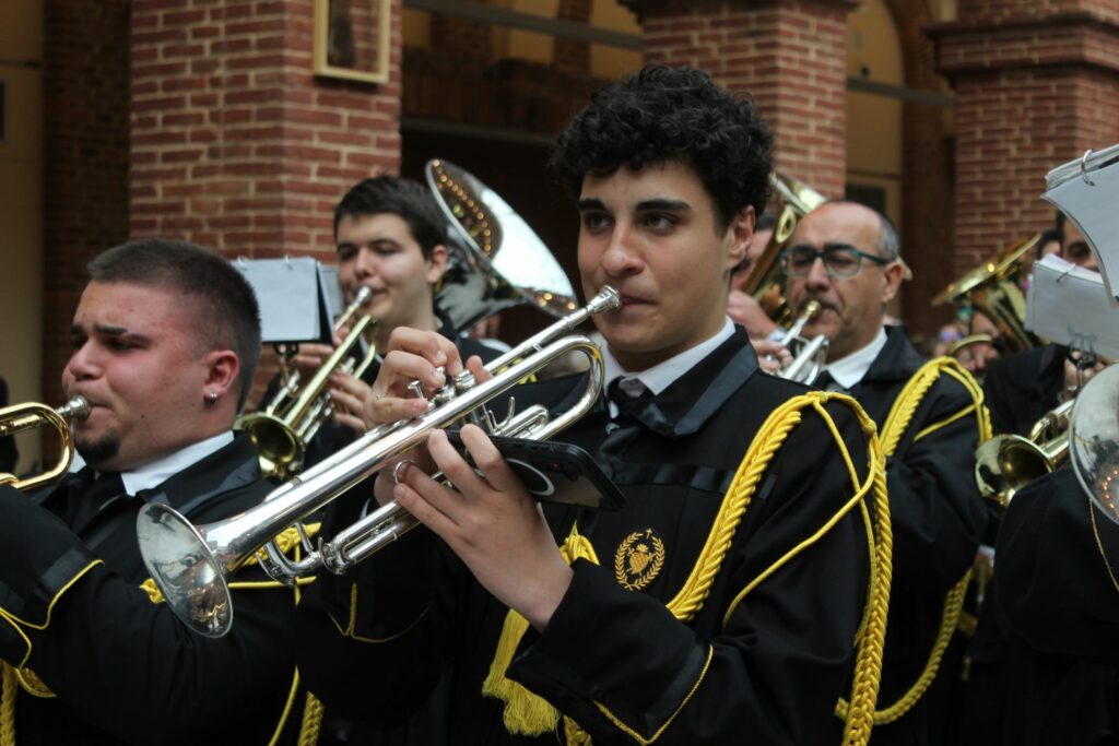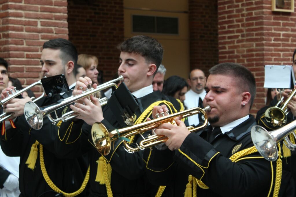 Vuestra dedicación, esfuerzo y, sobre todo, la pasión con la que eleváis vuestras notas, son un pilar fundamental de nuestra Cofradía. Vuestra música no es solo acompañamiento; es la voz del sentimiento, el eco de nuestra fe y la banda sonora inconfundible de nuestra Semana Santa. Cada marcha interpretada es una oración que se alza al cielo, enriqueciendo y dignificando nuestros desfiles procesionales.