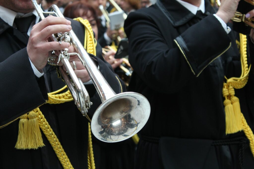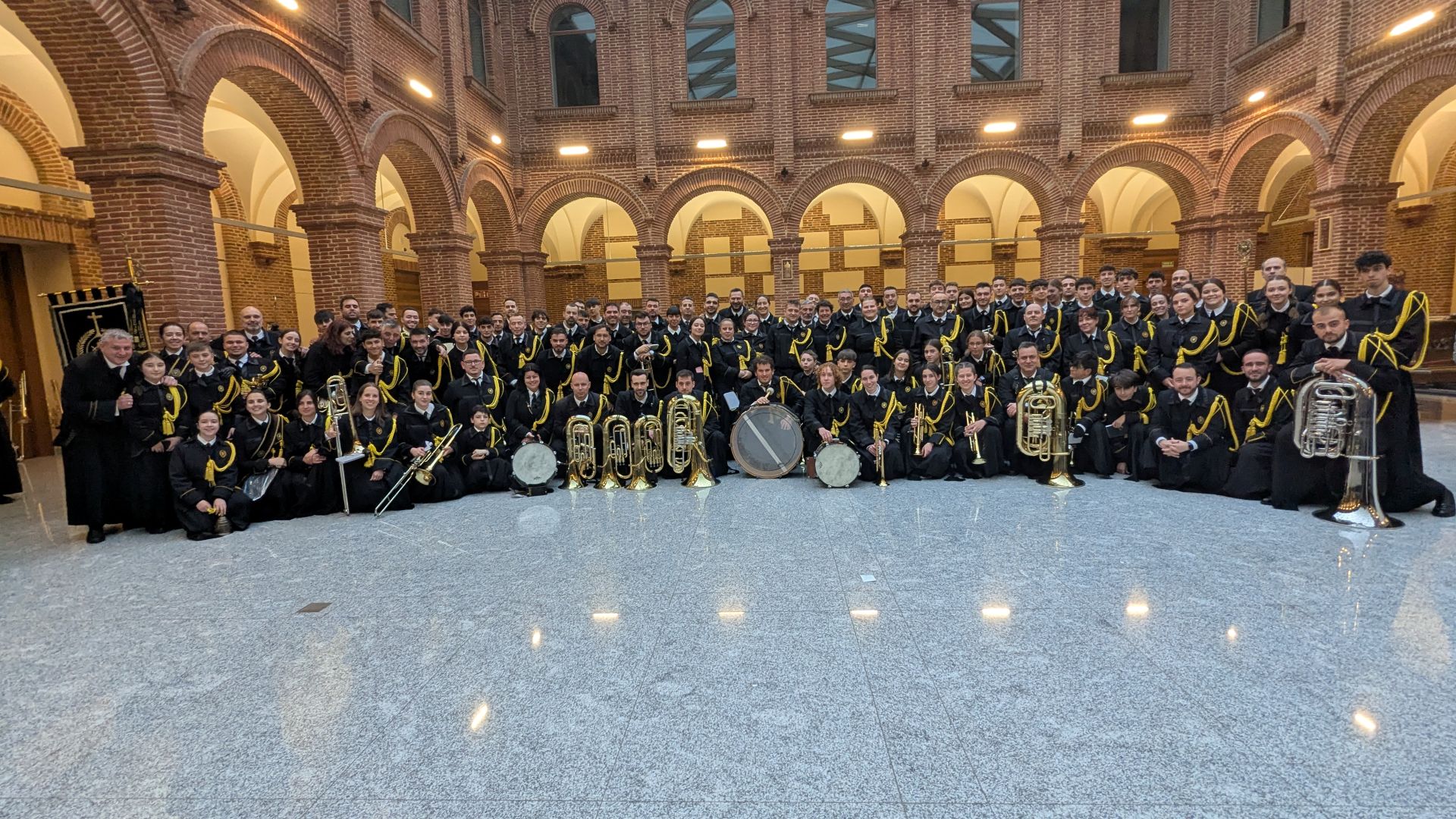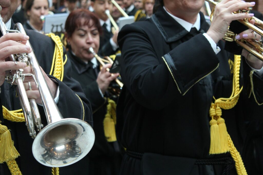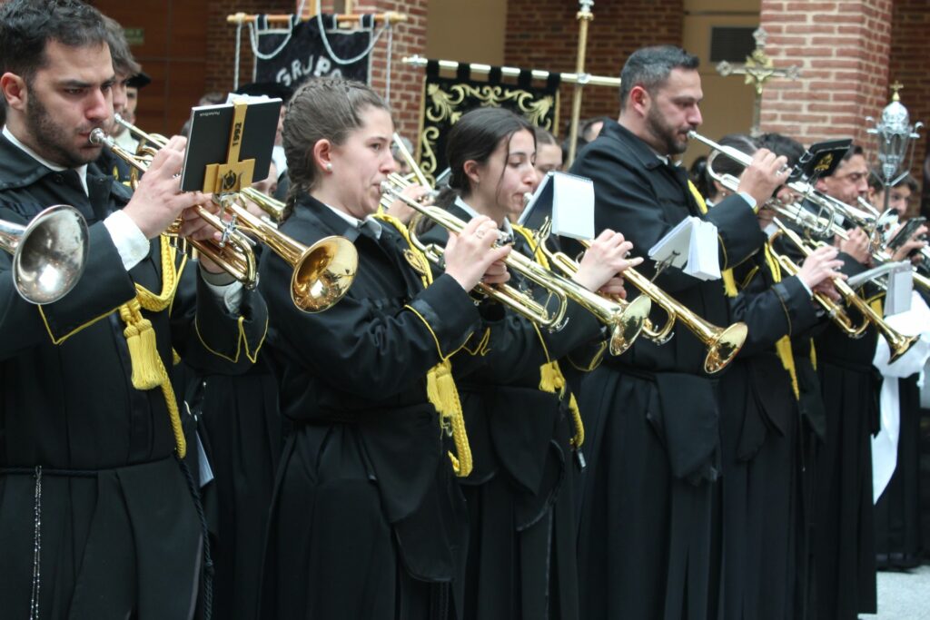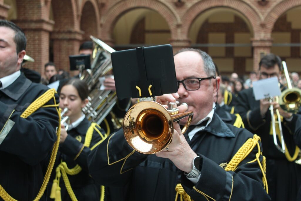 Vuestra dedicación, esfuerzo y, sobre todo, la pasión con la que eleváis vuestras notas, son un pilar fundamental de nuestra Cofradía. Vuestra música no es solo acompañamiento; es la voz del sentimiento, el eco de nuestra fe y la banda sonora inconfundible de nuestra Semana Santa. Cada marcha interpretada es una oración que se alza al cielo, enriqueciendo y dignificando nuestros desfiles procesionales.