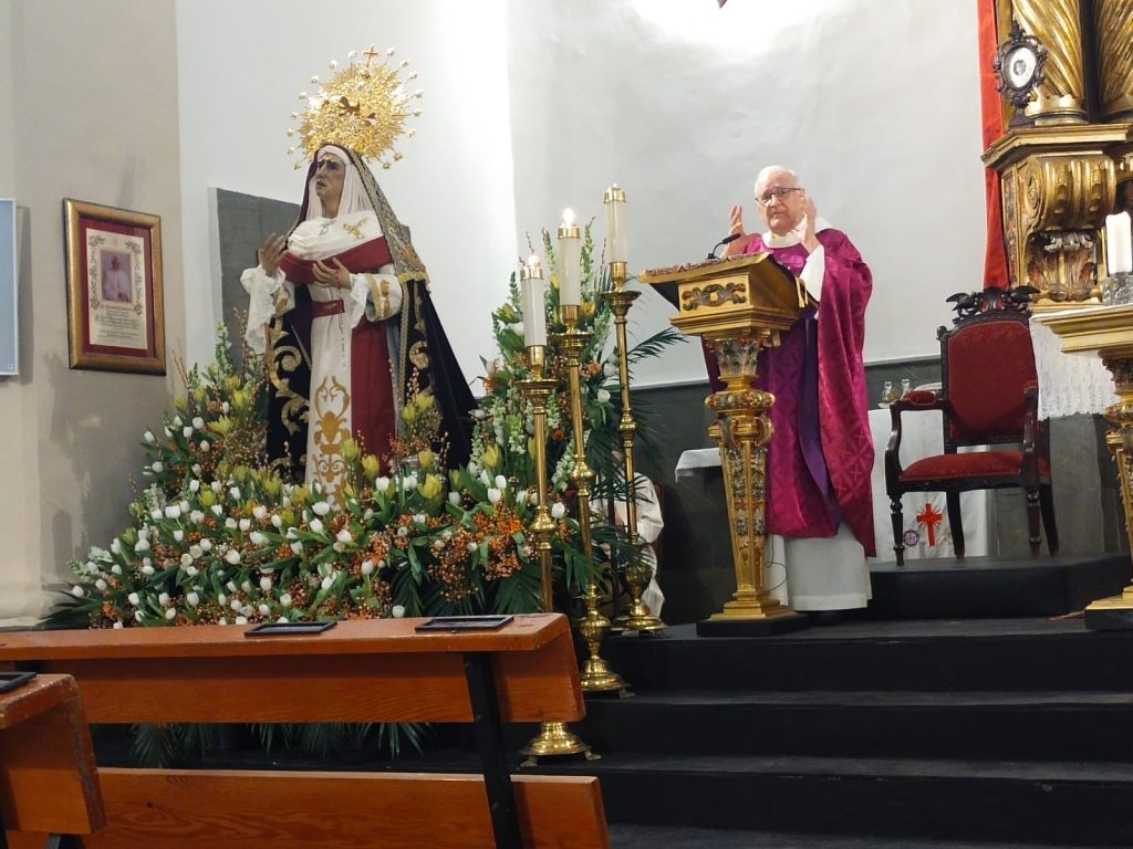 Durante la celebración eucarística, hemos contado con la presencia del hermano de la Cofradía y Prior de la Comunidad de Hermanos Dominicos, D. Manuel Gutiérrez, que ha realizado una breve exposición oral en torno a la talla restaurada.