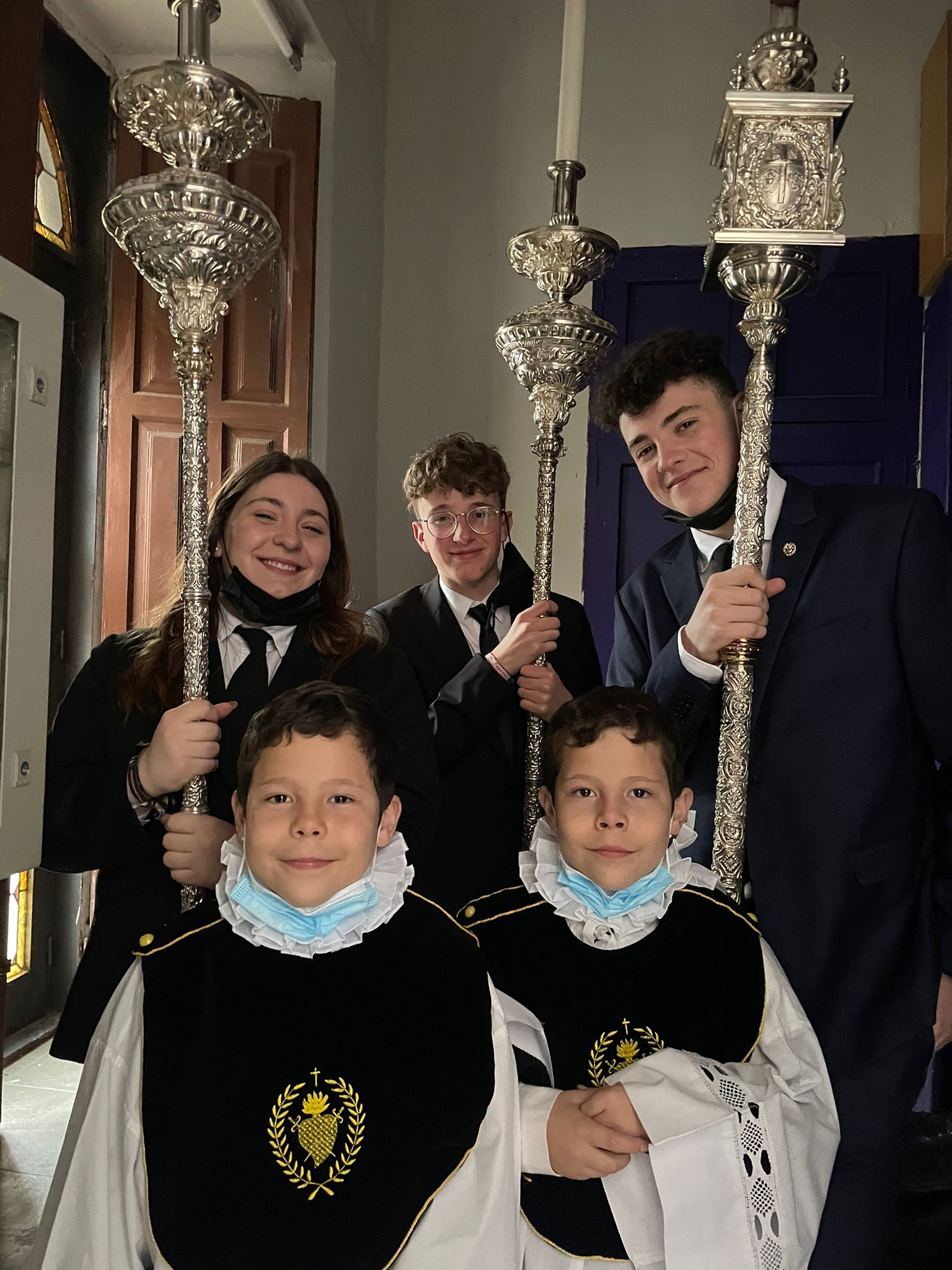 - Y el trabajo que a portan en el quehacer diario de la Cofradía cuando se les requiere para ello, por ejemplo en la colación de cartelería, en el doblado, ensobrado y etiquetado de documentos, limpieza y mantenimiento de las dependencias de la Casa de Hermandad, colaboración en la atención de exposiciones y otras labores del funcionamiento diario.