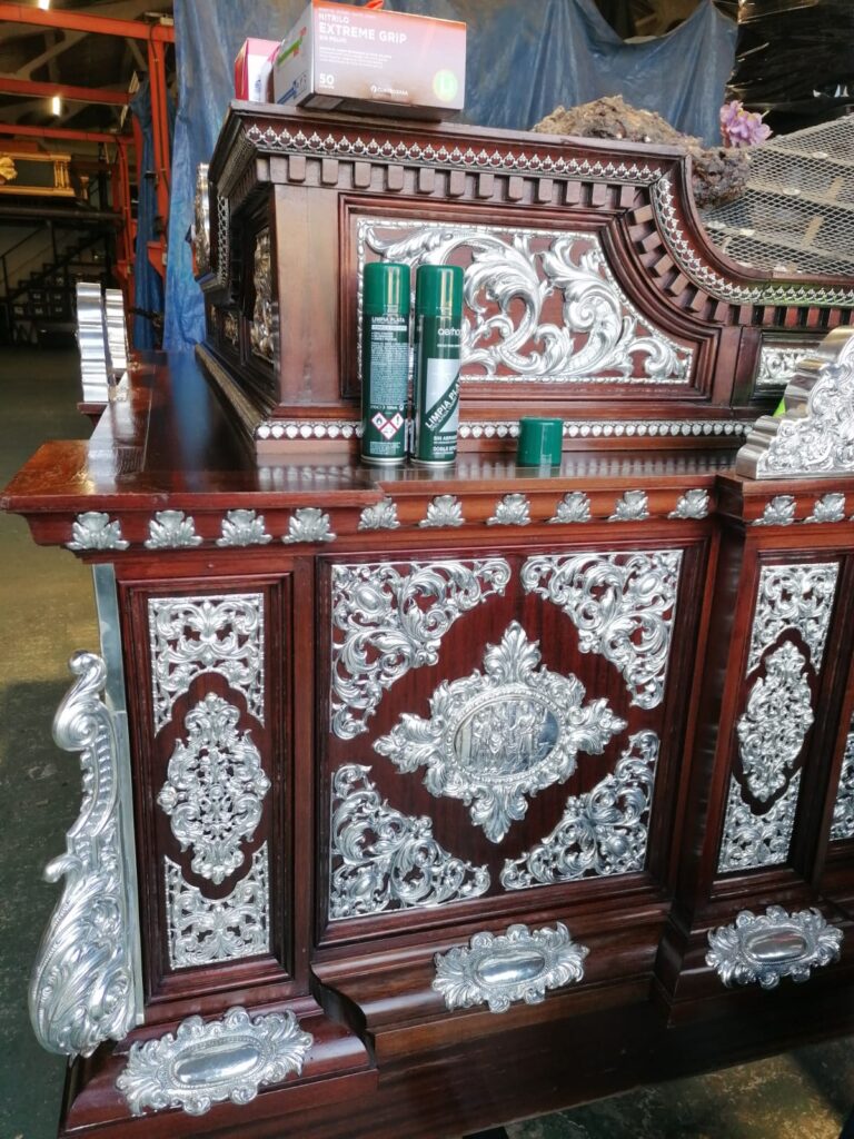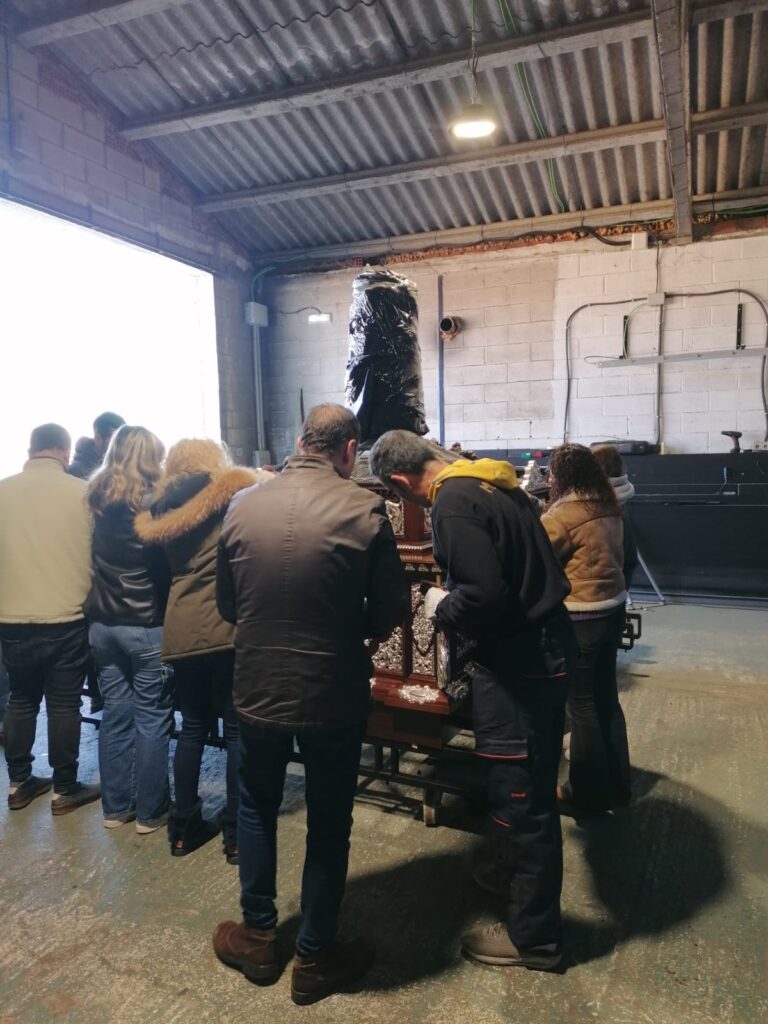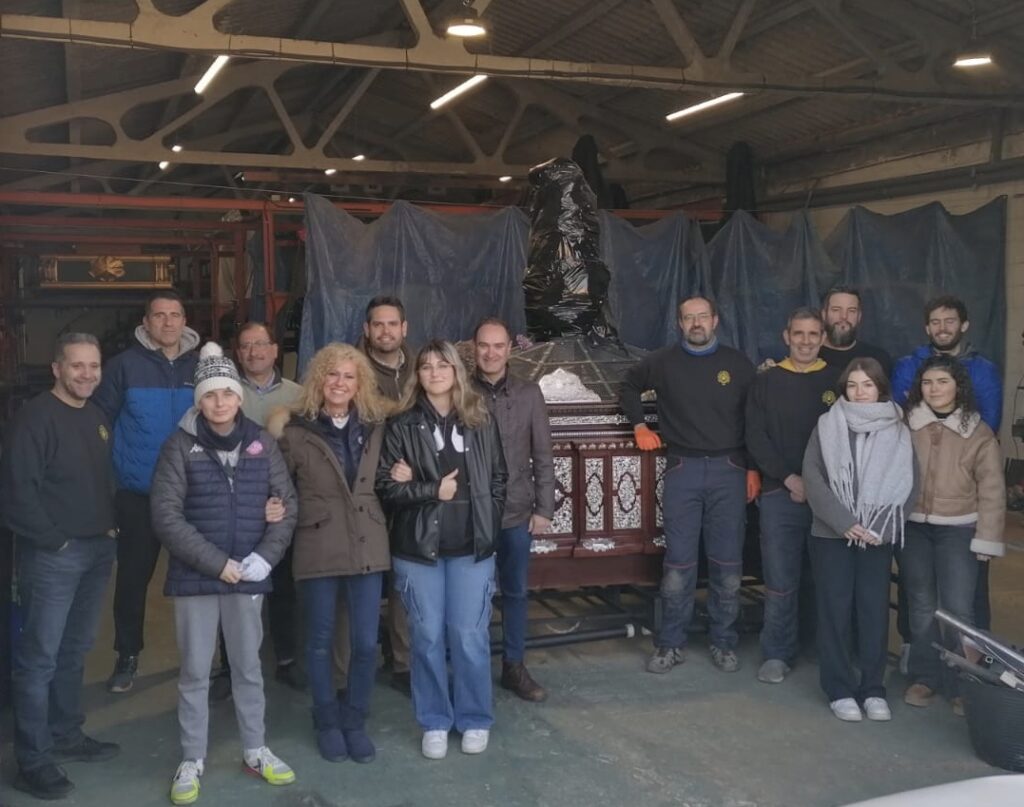 Esta mañana ha tenido lugar en la nave de montaje de la Cofradía una hacendera, con el fin de limpiar el Paso del Santo Cristo.
