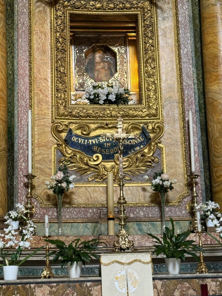 Durante su estancia en Roma han aprovechado para visitar la iglesia de Santa María del Pianto, sede de la Archicofradía Nuestra Señora del Pianto con la que nuestra cofradía mantiene un lazo prácticamente desde su fundación “atendiendo a una bula del Papa Gregorio XIII”.