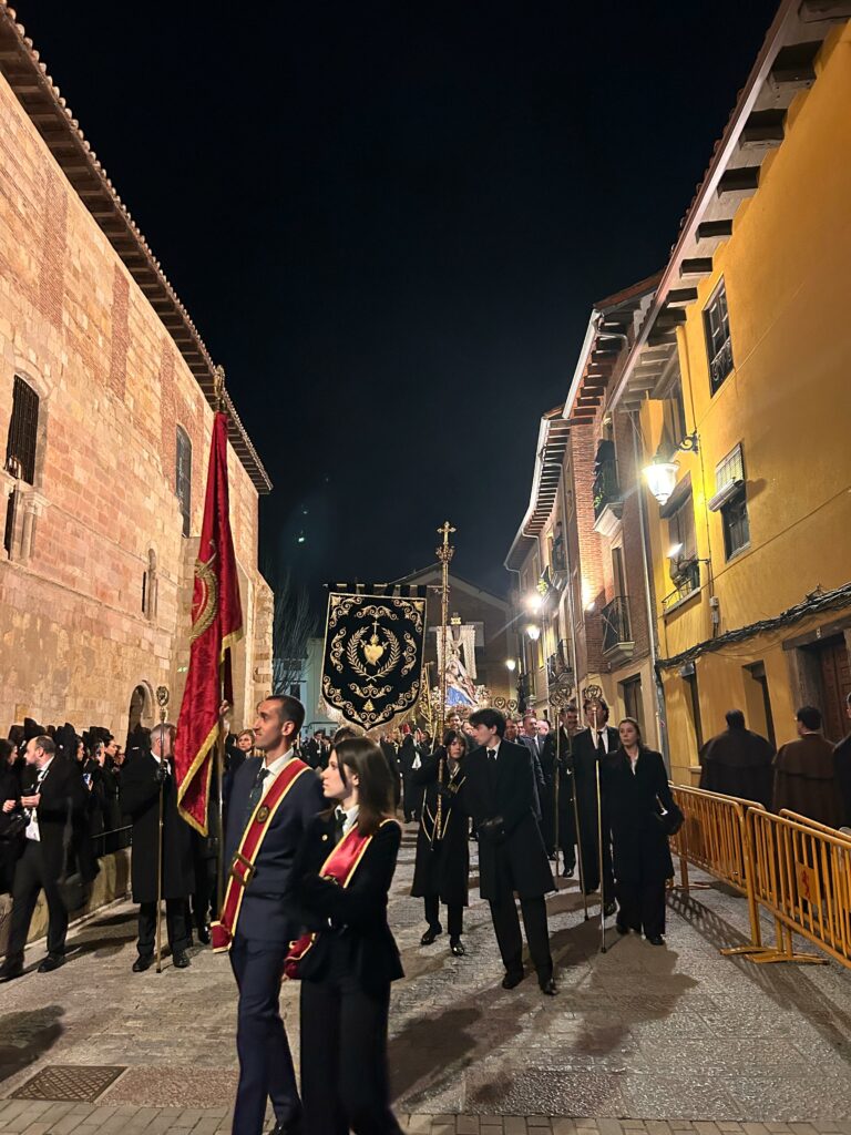 ​Acompañar a la Morenica del Mercado en la víspera de los días grandes de la Pasión supone renovar un lazo fraterno inquebrantable entre nuestra institución y esta devoción tan arraigada en el alma de los leoneses. Desde la Cofradía, agradecemos profundamente esta invitación de la parroquia que perpetúa nuestra historia compartida y la excelente organización de la procesión.