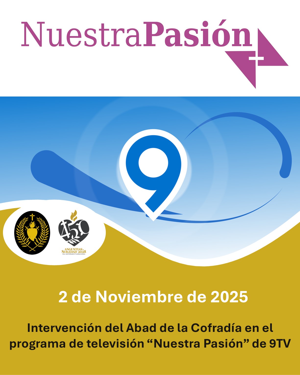 En el día de ayer se ha producido la intervención del Abad de Nuestra Cofradía, Abilio Guerrero Aller, en el programa «Nuestra Pasión» de 9 TV. Durante su intervención el abad ha hablado acerca del XI Congreso Nacional de Hermandades y Cofradías de Nuestra Señora de las Angustias que ha tenido lugar el pasado fin de semana en Ayamonte, así como de la elección de León como sede para el XII Congreso Nacional de Hermandades y Cofradías de Nuestra Señora de las Angustias que tendrá lugar en el año 2027.