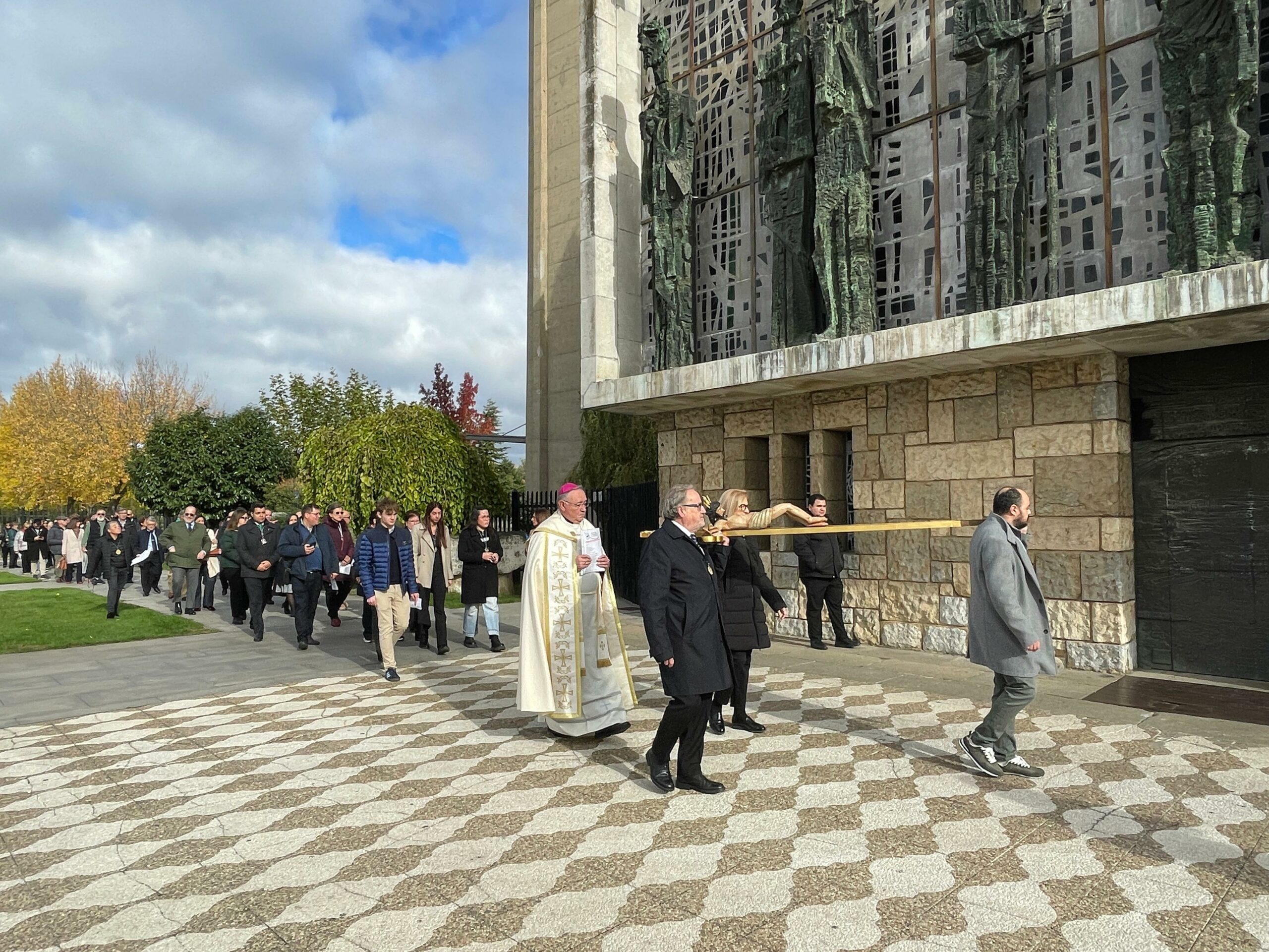 La Eucaristía estuvo presidida por nuestro Obispo, D. Luis Ángel de las Heras Berzal, cmf, con la participación de representantes de las diferentes cofradías de León, que compartieron una peregrinación de carácter simbólico, acompañando al Santísimo Cristo de la Misericordia, símbolo de este Jubileo, desde la Parroquia del Humilladero hasta la Basílica.