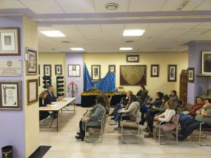 Reunión de la hermana Montserrat Méndez García con las braceras del paso Sagrada Lanzada, con el fin de presentarse como Seise del paso e intercambiar iniciativas y propuestas.