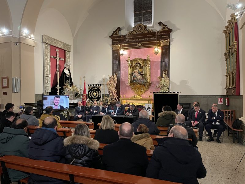 El acto comenzó con una presentación en video del Logotipo del 450 aniversario de la Cofradía y a continuación pudimos charlar con Javier Ortego, el diseñador que lo creó pudiendo entender un poco mejor su visión de la Cofradía.