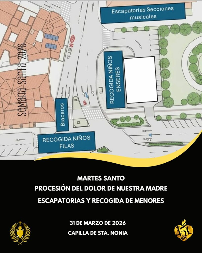 La Cofradía presenta un plano informativo relativo a las diferentes escapatorias previstas para el momento de recogida de la Procesión, tanto para hermanos de filas, secciones musicales, braceros, enseres, etc, con el fin de facilitar la complejidad del momento.