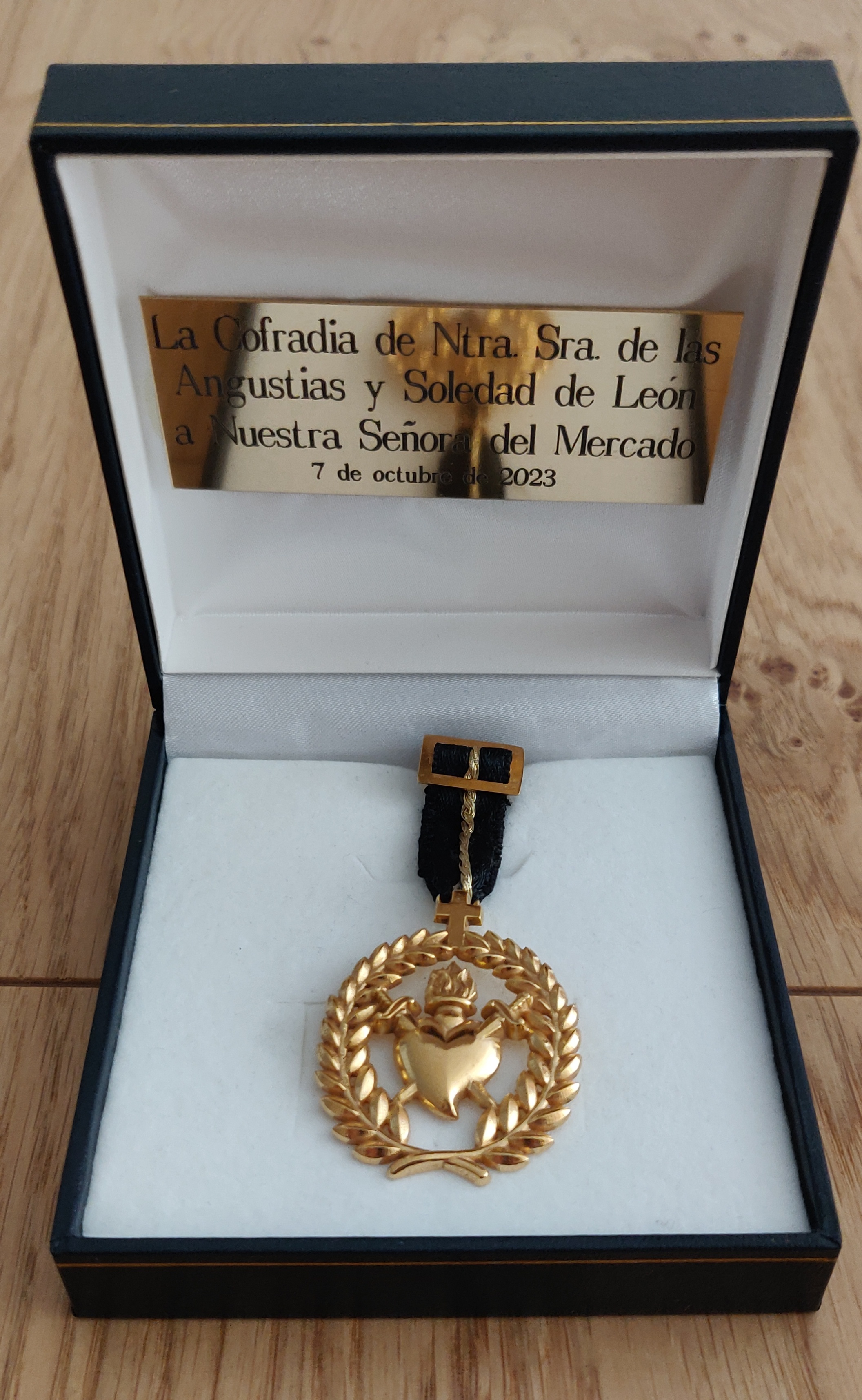 El punto y final de estos actos celebrativos tendrá lugar esta misma mañana, con una misa Acción de Gracias, en la Parroquia del Mercado, donde la Cofradía entregará una medalla en recuerdo de este día tan especial, y que a partir de ahora portará la Virgen del Mercado, recordando así los estrechos lazos que nos unen, como Cofradía Mariana y como sede canónica de nuestra Cofradía.