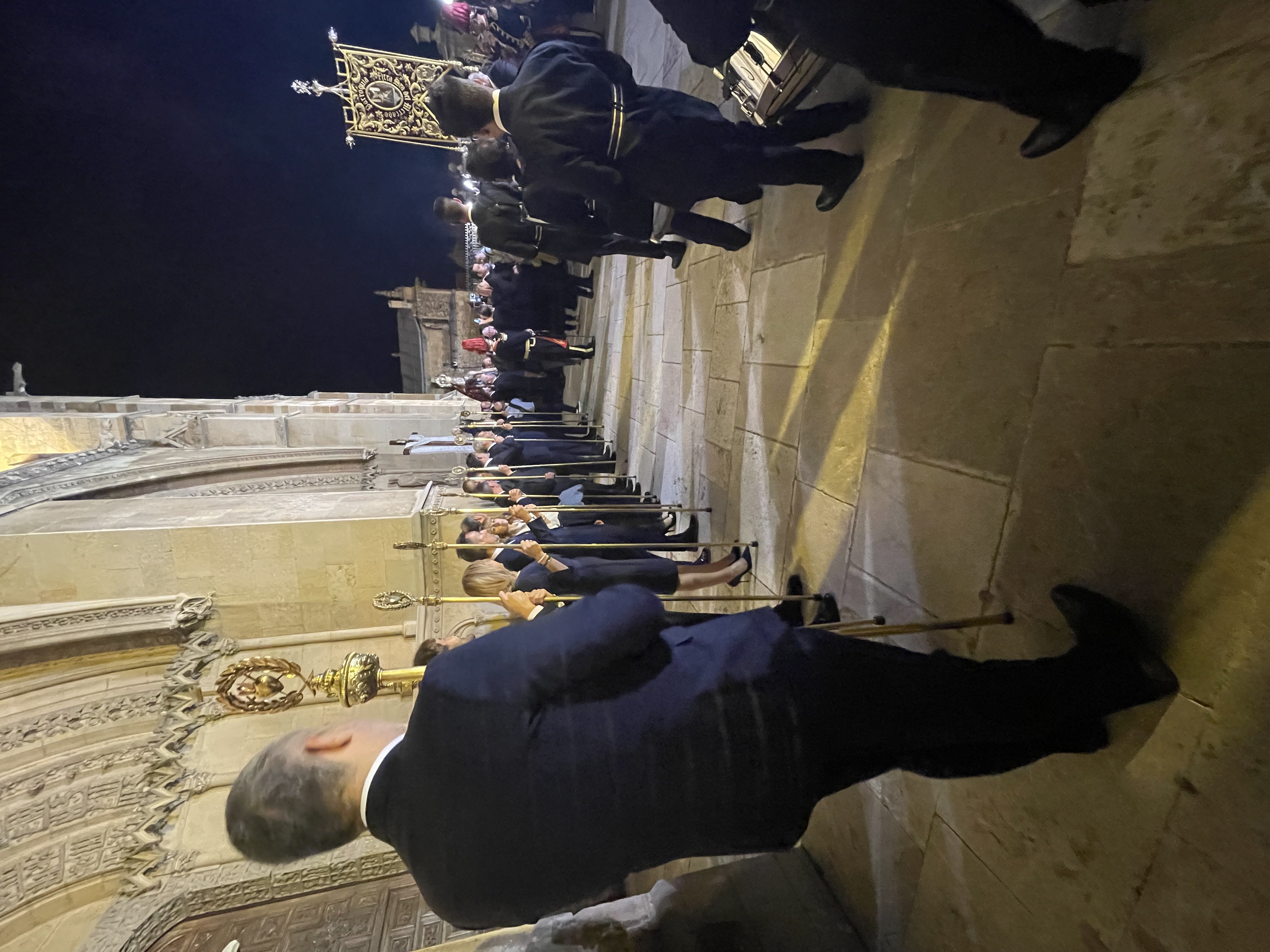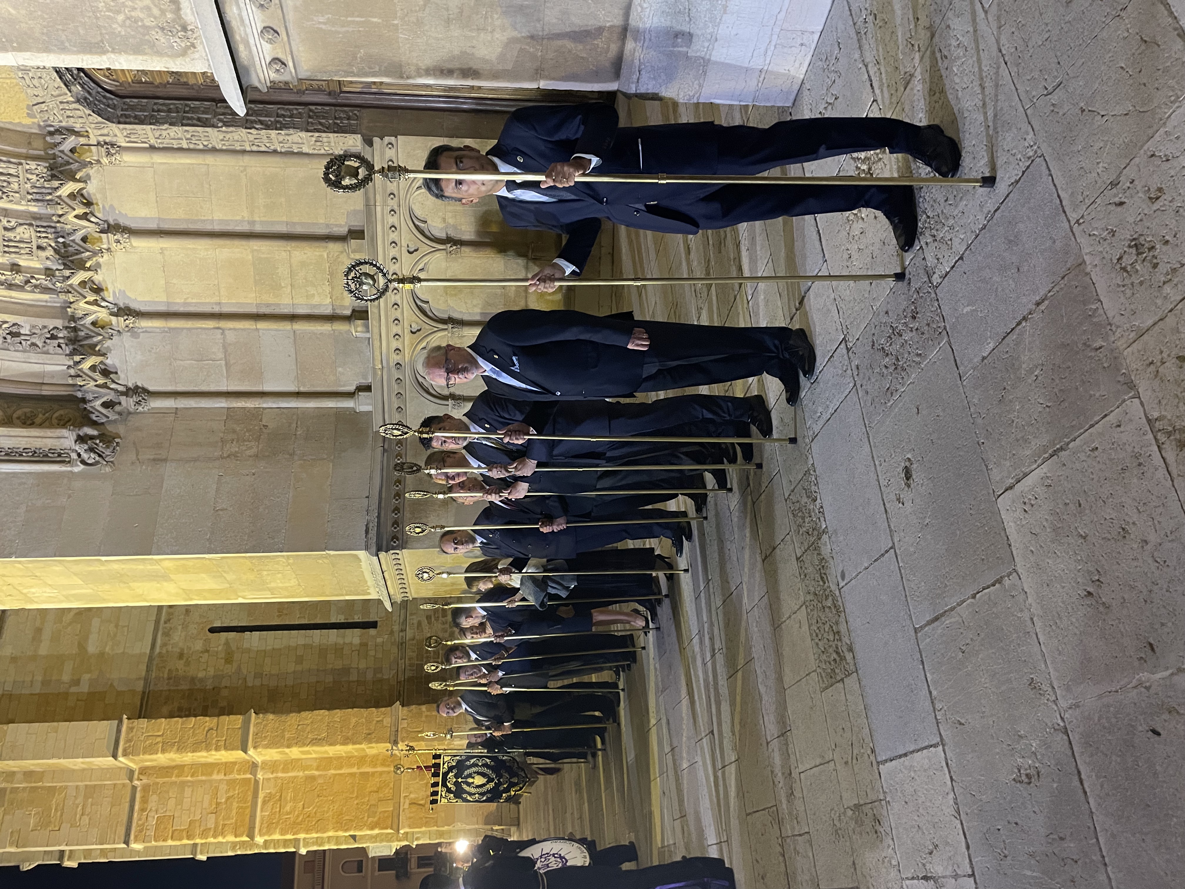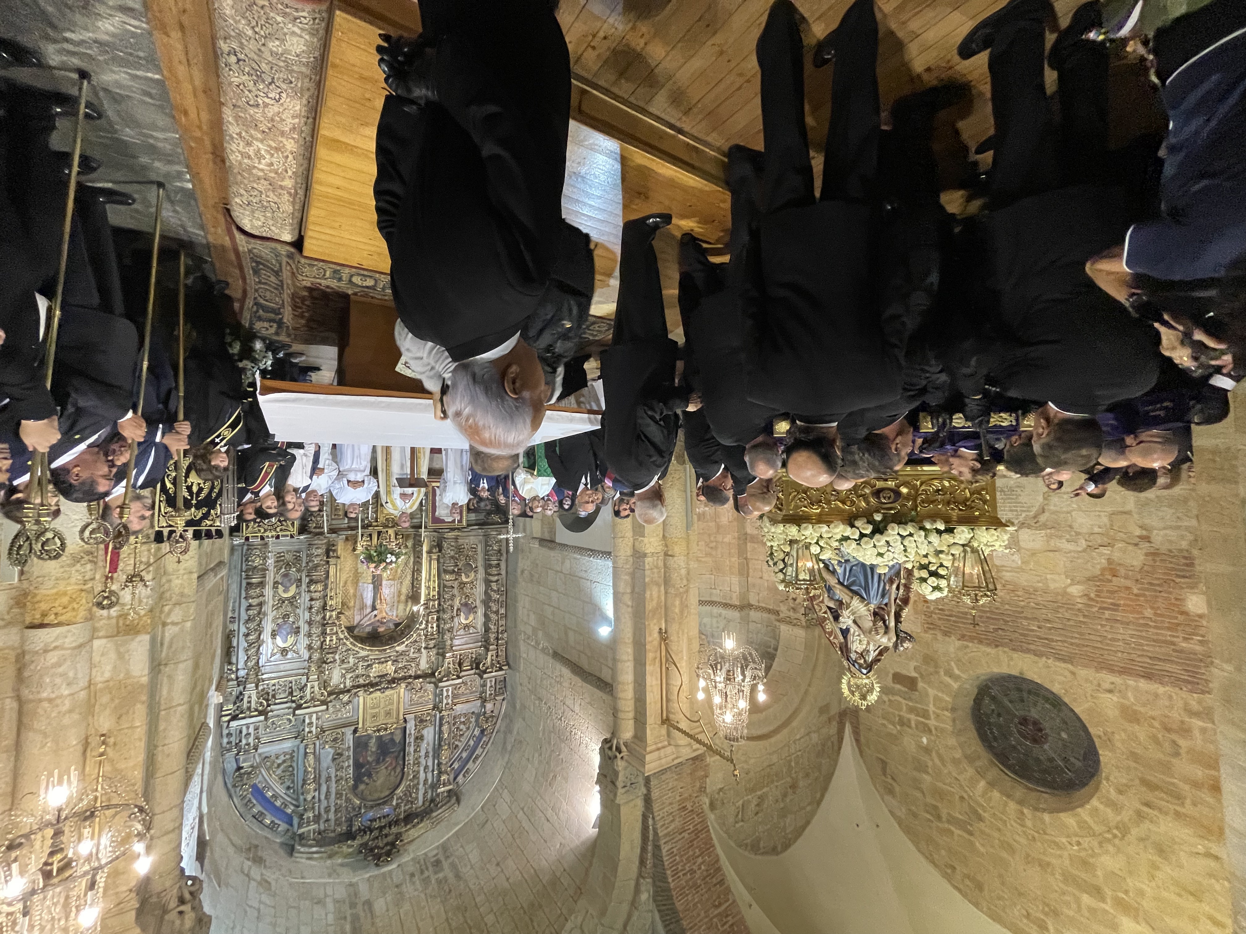 En la tarde de ayer, la Cofradía de Ntra. Sra. De las Angustias y Soledad, con la Junta de Seises en pleno, acompañó a la Virgen del Mercado, la antigua del Camino, en el día de su Coronación Canónica.