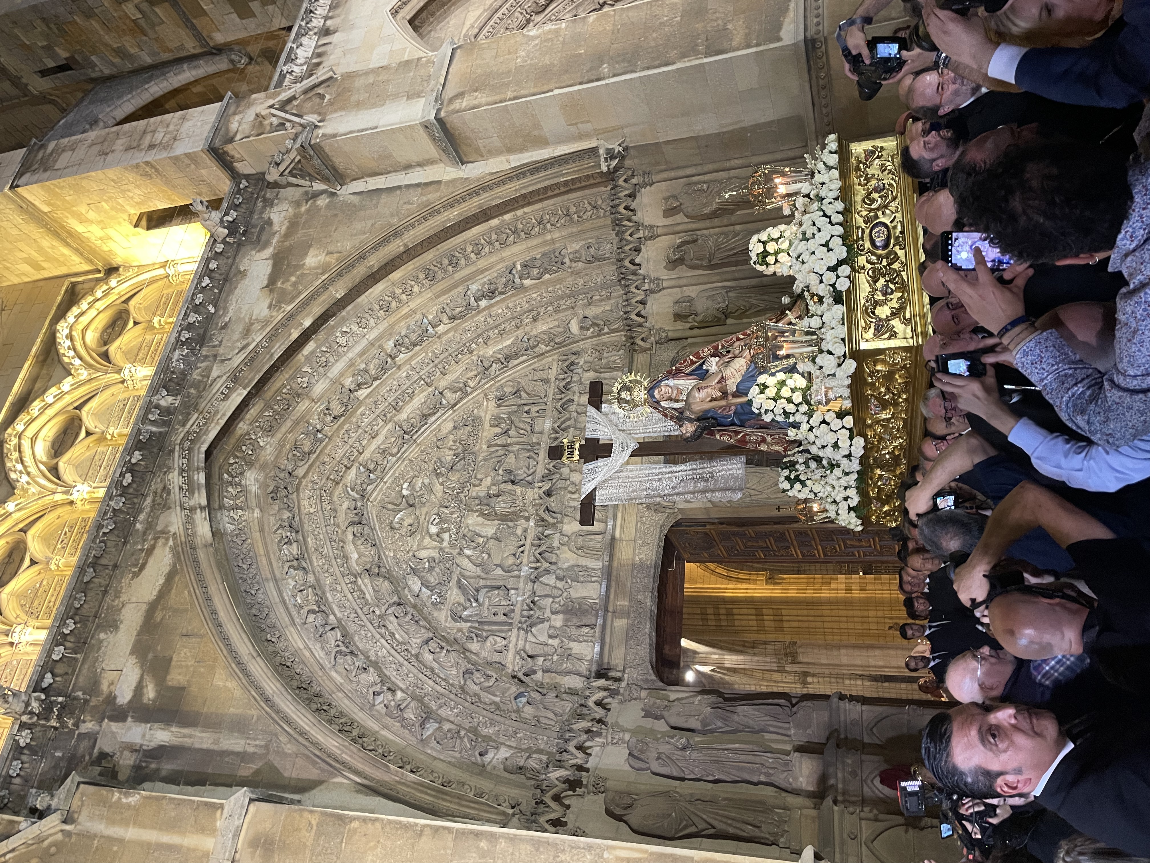 Primero, en una Catedral llena de feligreses y representantes de los diferentes estamentos y Cofradías de la ciudad de León, en una eucaristía presidida por nuestro Obispo, Don Luis Ángel de las Heras, y en un inmejorable ambiente de hermandad y unidad por dicha Coronación.