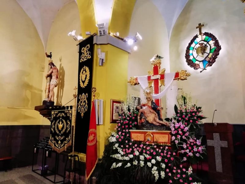 Durante la celebración del mismo la imagen de la Virgen de las Angustias se sitúa a la derecha del Evangelio. Se coloca también un centro en el Altar Mayor como adorno a la imagen Titular de la Cofradía hermana del Dulce Nombre de Jesús Nazareno.