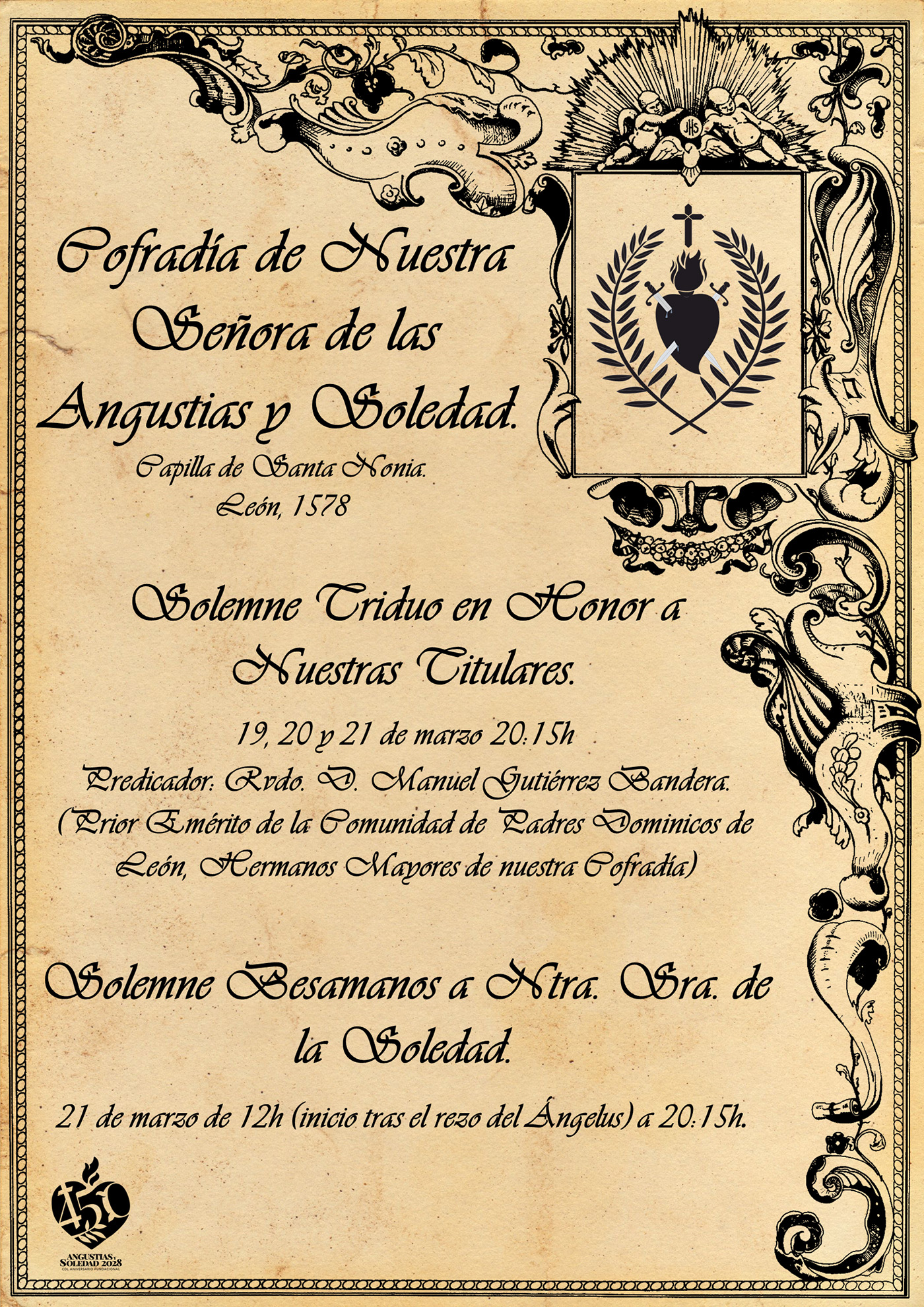 Nuestros Estatutos en su Titulo II establecen entre los fines y actividades de la Cofradía la celebración del Triduo en honor de Nuestra Señora durante la última semana de cuaresma (artículo 13).