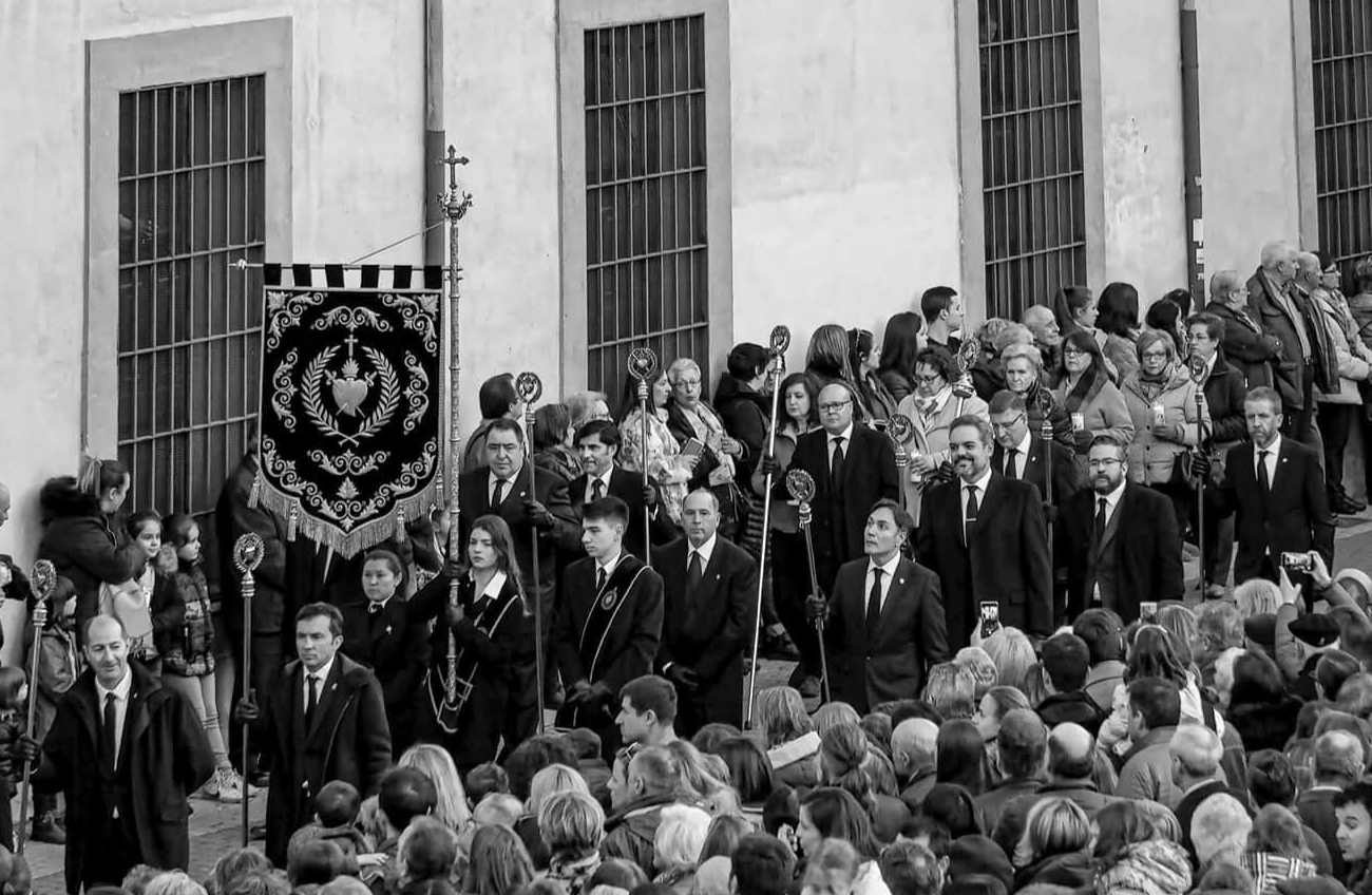 El encargo de nuestra Cofradía establece en su artículo 20 que el Viernes de Dolores la Junta de Seises en pleno y con el Guión y la Pendoneta, asistirán a la procesión de los Dolores si fueran invitados a ello como sucede desde tiempo inmemorial , con vara de mando, guantes negros y traje de calle.